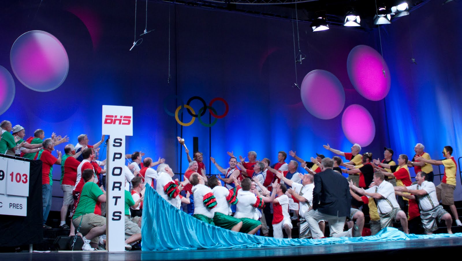 The contest involves each chorus performing two songs, which are judged across three categories - Singing, Music and Presentation. Many choruses choose a theme for their performance that links the two songs together for the audience. The MVE is known worldwide for their “legendary” theatrical presentations.